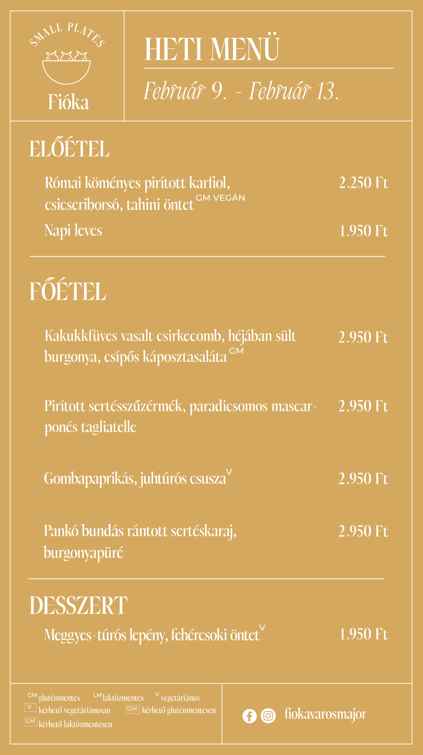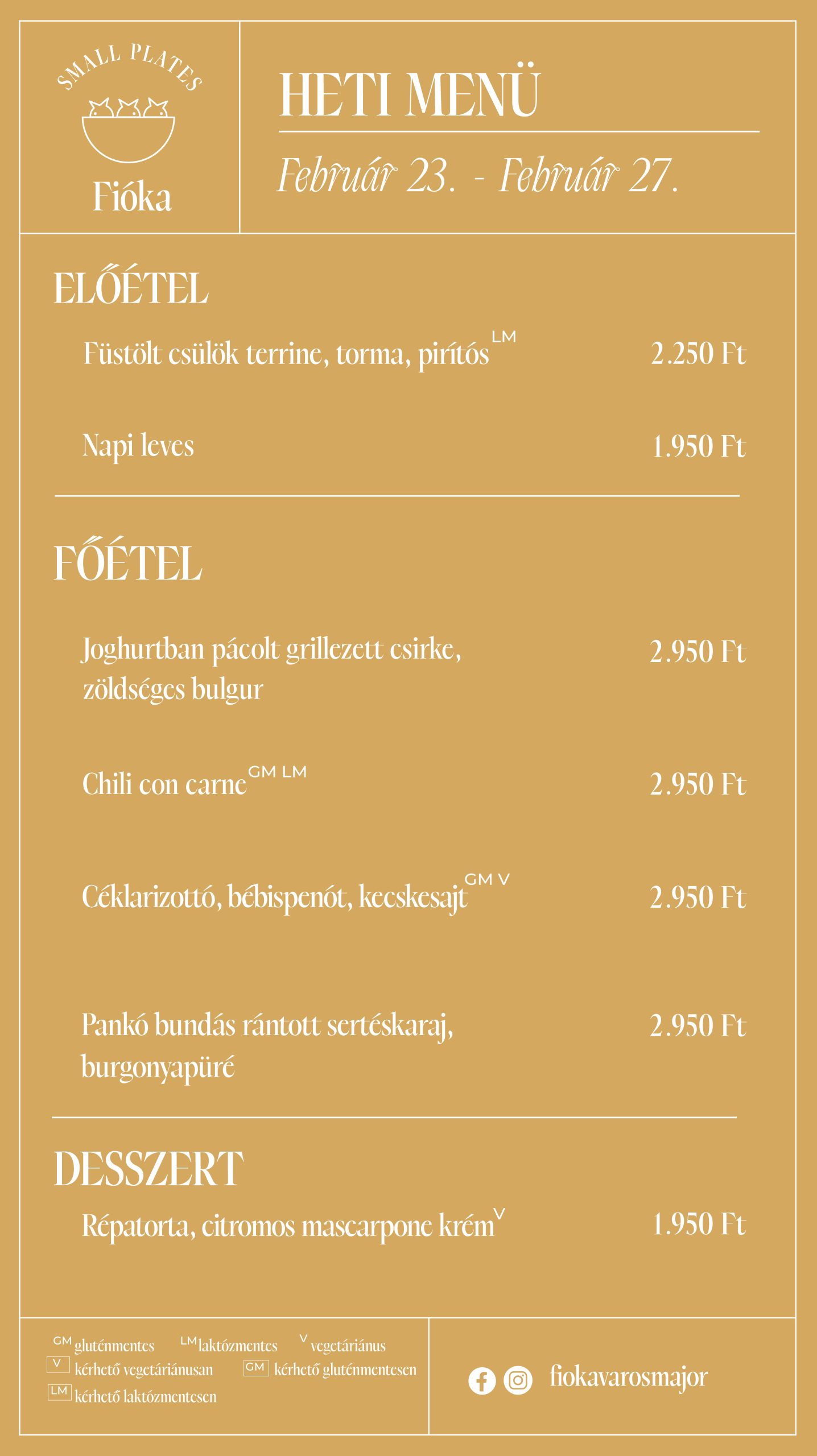 12 500 Ft(4 tányéros small plates válogatás a séftől, az aktuális összeállításról érdeklődj!)
